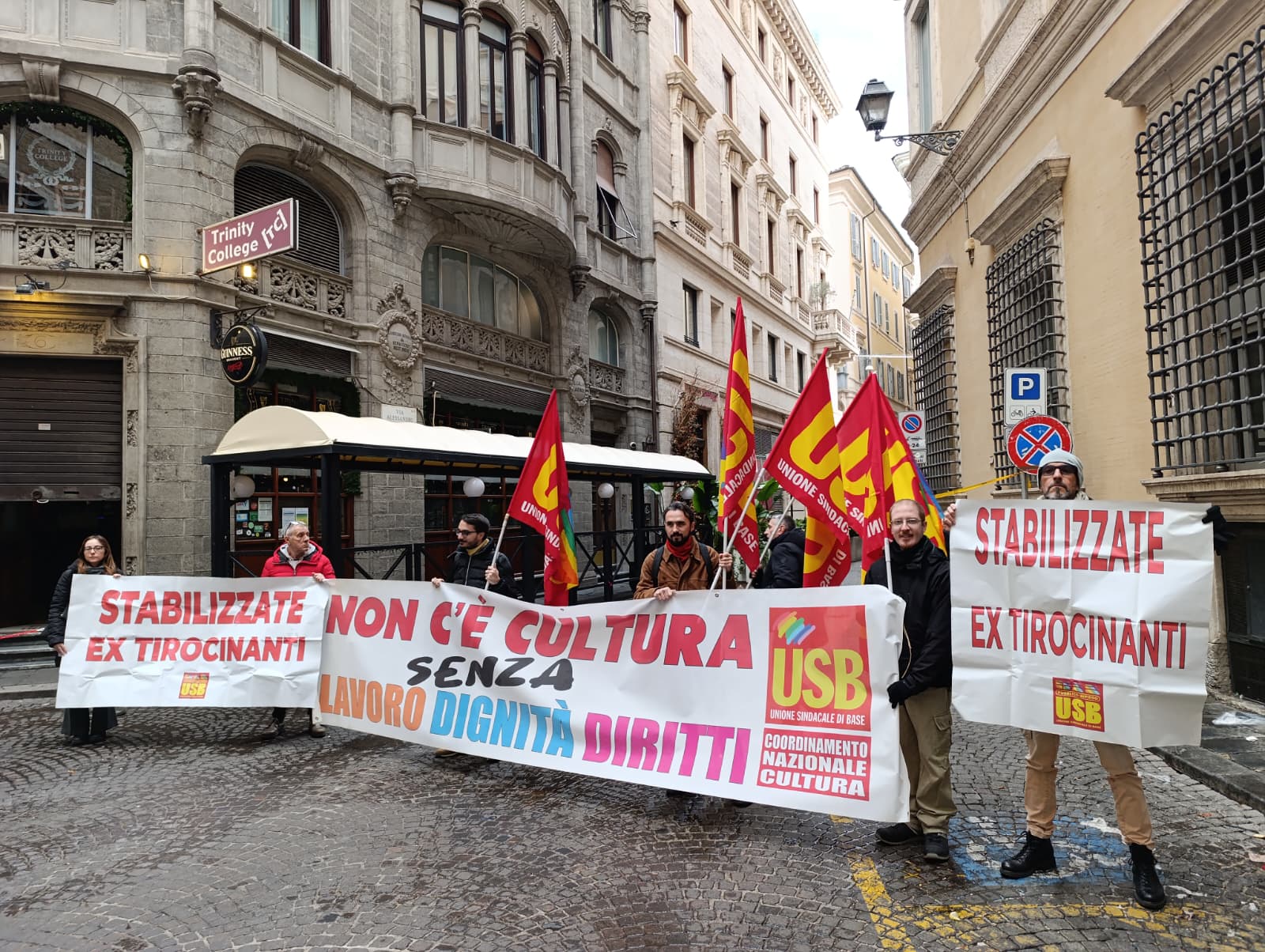 Questa mattina 26 novembre 2025 come USB Pubblico Impiego MiC abbiamo organizzato un sit-in che ha portato sotto le finestre del nostro ministero la protesta per sensibilizzare la politica del MIC a ricevere una nostra delegazione sulla questione del precariato, in particolare sulla trasformazione del contratto di lavoro e la stabilizzazione dei dipendenti precari del MiC (cosiddetti “ex tirocinanti”).